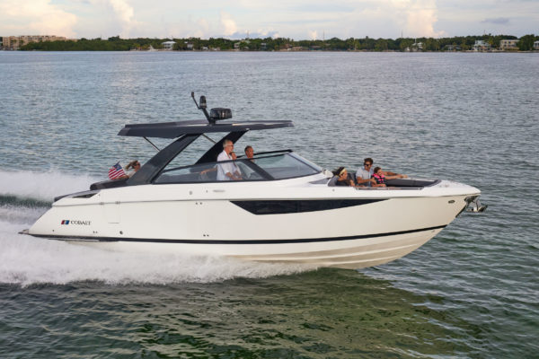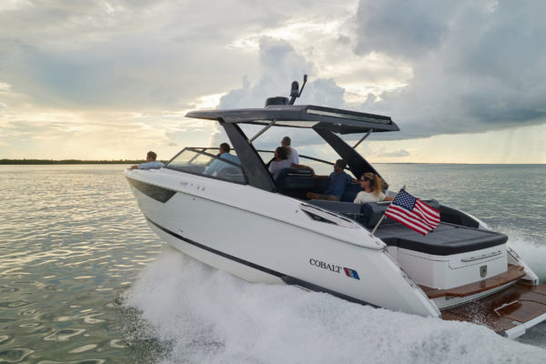 Continuing the Cobalt theme of luxury materials and unmistakable quality, the R35’s finely tailored upholstery covers an enormous amount of seating in an array of modern colors and textures from stem to stern. The ergonomic helm features dual Garmin glass cockpit touchscreens, while the passenger area offers such amenities as a stowable oversize teak table and an ingenious Freezer/Fridge combo unit that gives you both functions in one space-saving package.