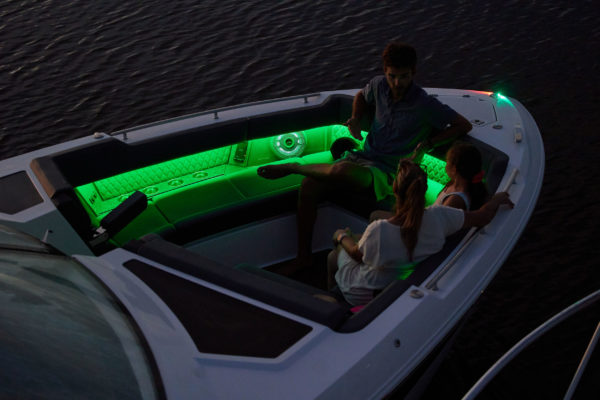 LED transom lighting provides the appropriate level of illumination for the perfect evening of entertaining friends. Shown on model 242 with standard swim platform.